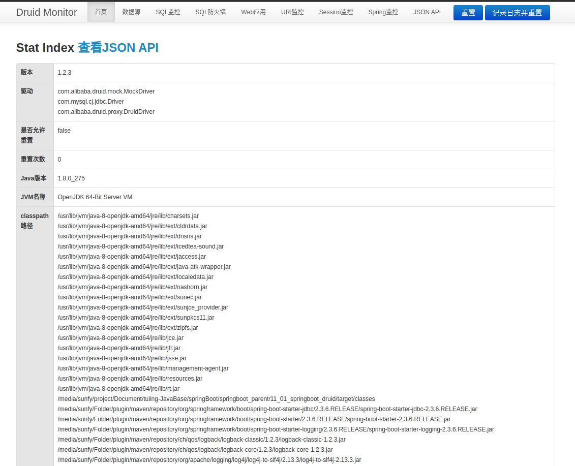 经过上面的一番配置,我们实现了想要的功能,我们实现的功能也就是Druid Starter中所具备的功能,接下来我们在有上面自定义配置的基础上看下官方提供的Starter又是如何实现的呢?